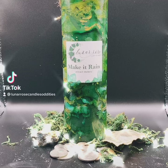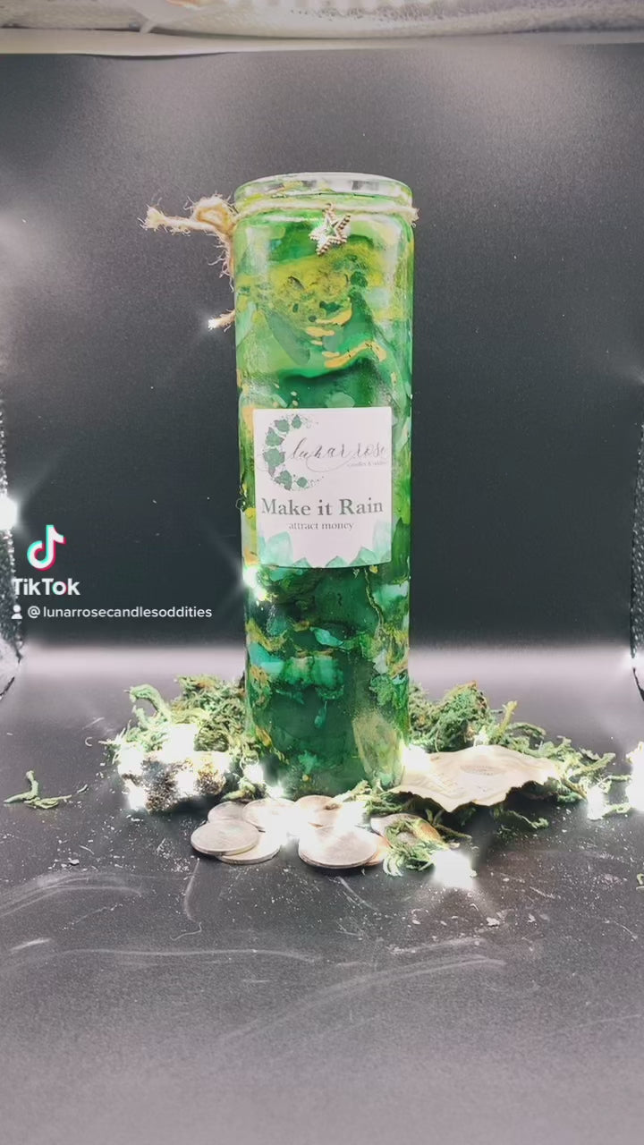 Call in cash flow and abundance with the Make It Rain Candle by Lunar Rose — a handcrafted seven-day money manifestation candle designed to attract financial opportunity, luck, and quick prosperity.