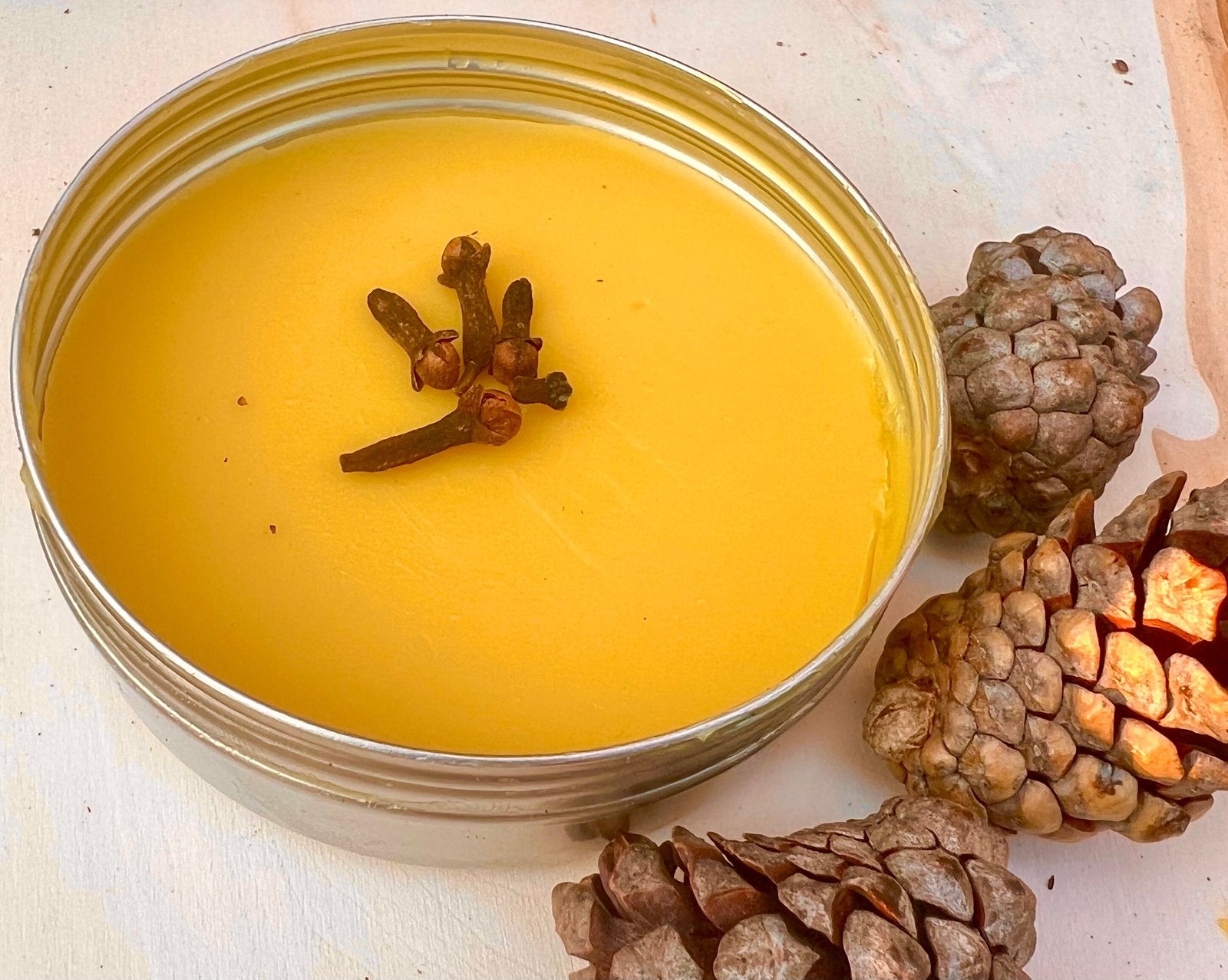 Beeswax, Coconut Oil, Shea Butter, Vitamin E, Clove Essential Oil, Wild Orange Essential Oil.